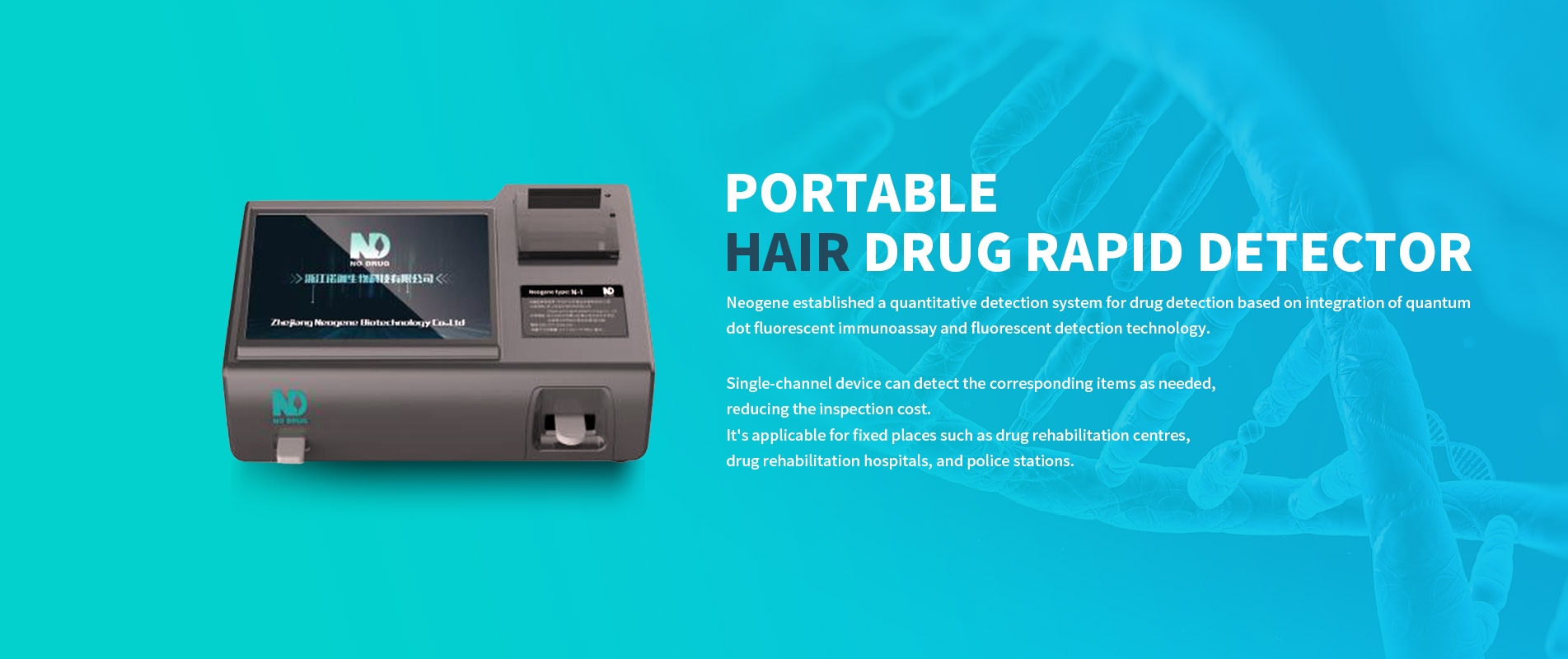 Zhejiang Neogene Biotechnology Co., Ltd. (Neogene) was co-founded by China Institute for Reform and Development (CIRD) Co., Ltd., China Health Industry Investment Fund Management (CHIC) Co., Ltd. and Yangtze Delta Region Institute of Tsinghua University, etc. The company is specialized in the research and development of biotechnology and related products, intended to build a comprehensive system which offers drug testing, judicial authentication, sewage drug monitoring, drug rehabilitation products.