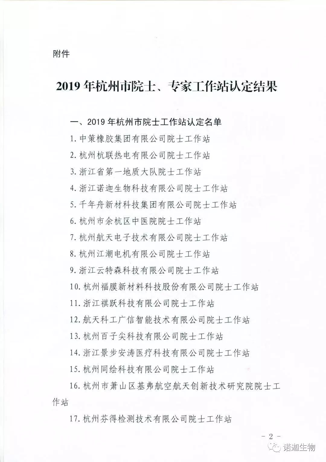 11月27日,浙江諾迦生物科技有限公司正式被認定為“杭州市院士工作站”。